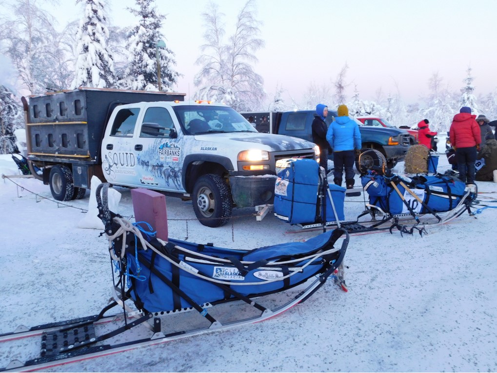 Am 3. Februar 2018 war es endlich soweit. Am Tag des Rennens gingen wir bereits um 8:00 Uhr morgens zum Dog Yard, wo die Musher im Minutentakt eintrafen und ihre Plätze zugewiesen bekamen. Dieses Erlebnis wollten wir keinesfalls verpassen. Wir konnten beobachten, wie sich die Teilnehmer des Quests für den Start und für die 1000 Meilen bereit machten.